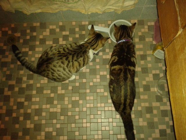 朝食後、二人でお水の入ったバスタブをみつめて 飲みたそうにしている。