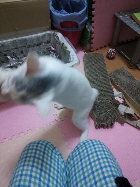 疲れ知らずでじゃらしを追い掛け回して延々と暴れまくります。