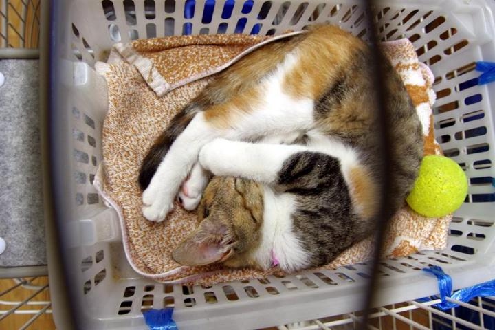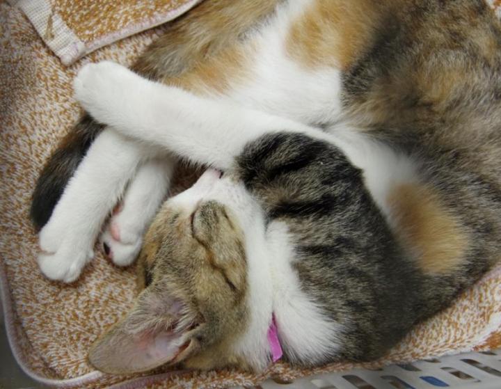 そして白黒ママの子猫は一匹に。三毛猫ちゃん