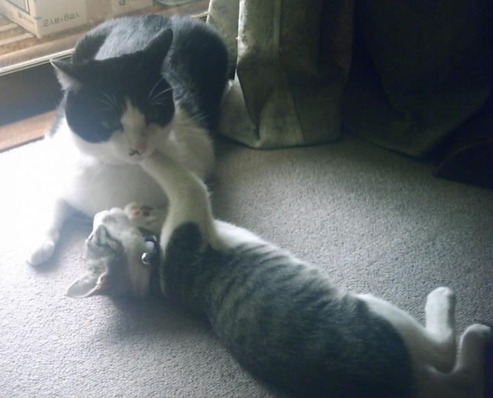 それでもたかが仔猫。普通、成猫なら、負けないかもしれないが、ハチ君はダメだった。あんな小さな仔に、一方的にやられていた。