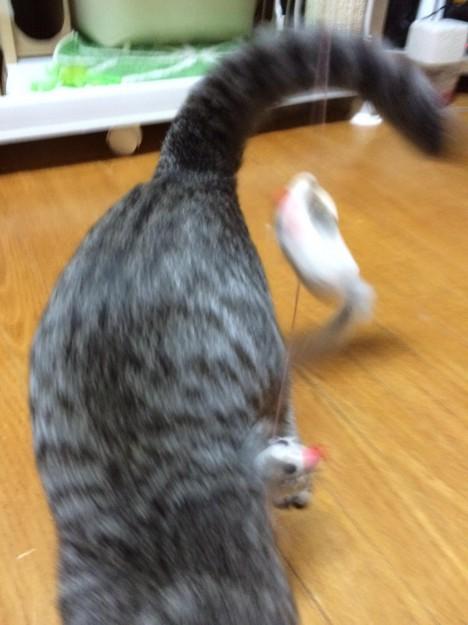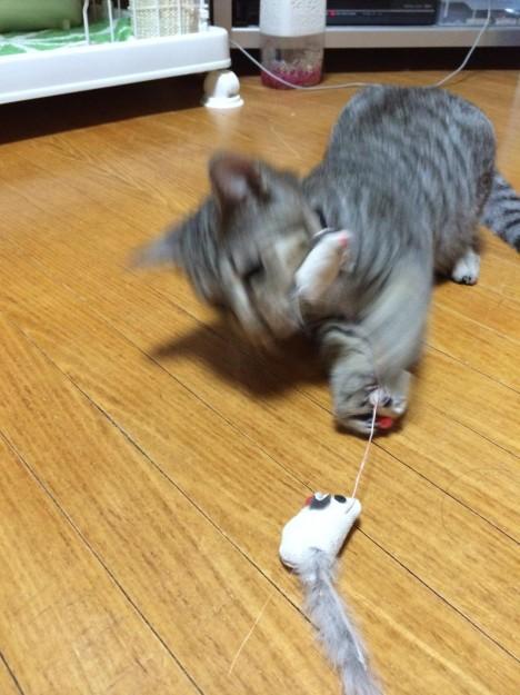 今日、ネズミが連なった新しいおもちゃを出したところ…