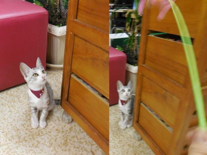 只今、家猫修行中、猫じゃらしに反応はじめました(^。^)
