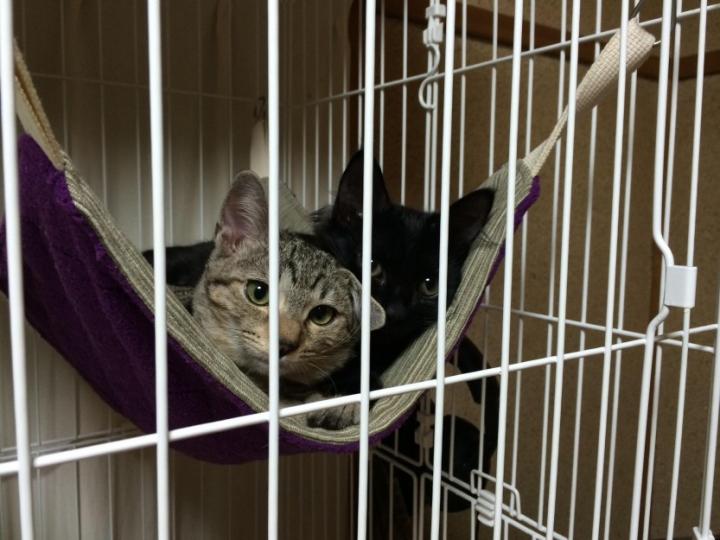 夕食にフライドチキンがあったので、ケージに入ってもらいました。