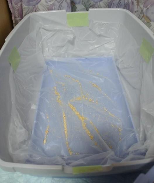 ビニール袋を半分に切ったものを養生テープで止めてあります。
