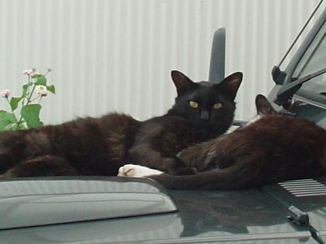 ムーちゃんや現在のクロちゃんとは、1か月足らずの短い間の付き合いだった先代のクロちゃん。ムーちゃんに近づくと威嚇(?)されて、すごすごと引き下がっていた情景が思い出に残っています。(ムーちゃんは当時から活発でした。)