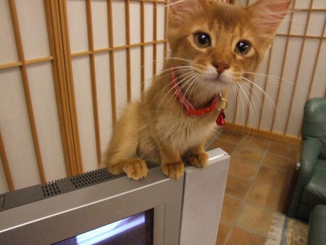 33歳の誕生日に主人に猫を買ってもらいました。種類は、「ソマリ」名前は、「ブリトニイ」です。私達は、「ぶりちゃん」とよんでいます。みなさん、仲良くしてください。