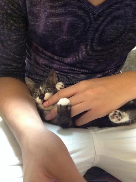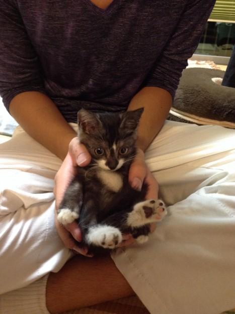 子猫ちゃん写真でみると黒く見えますがグレーっぽく縞模様があります。