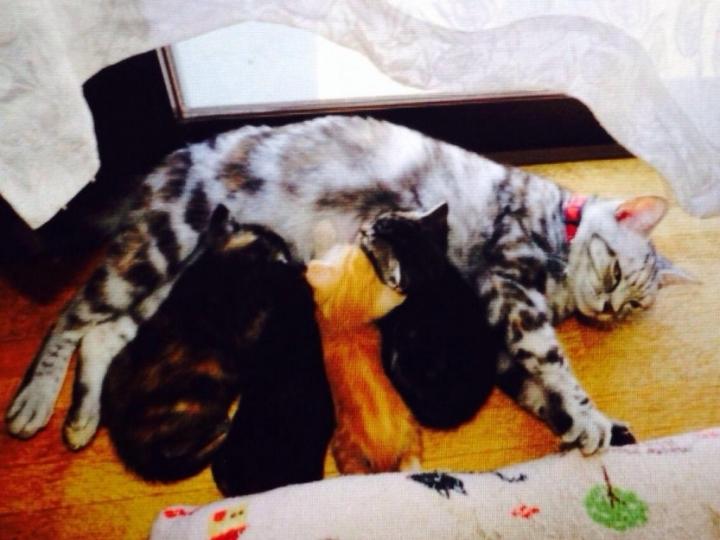 8月中旬に生まれた子猫たちの離乳食を始める頃になりました。本当は猫としての社会性を身に付けたり、穏やかな性格の良い子猫に育つためには、3ヶ月位まで親猫や兄弟と過ごすほうが良いのですが…。今から10日程度で離乳やトイレの躾を急ぎます。