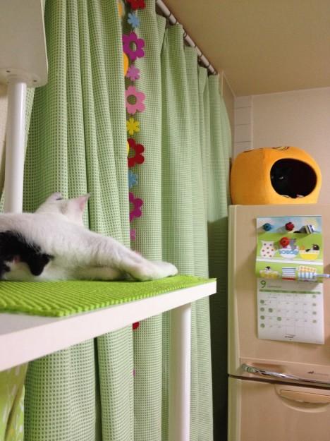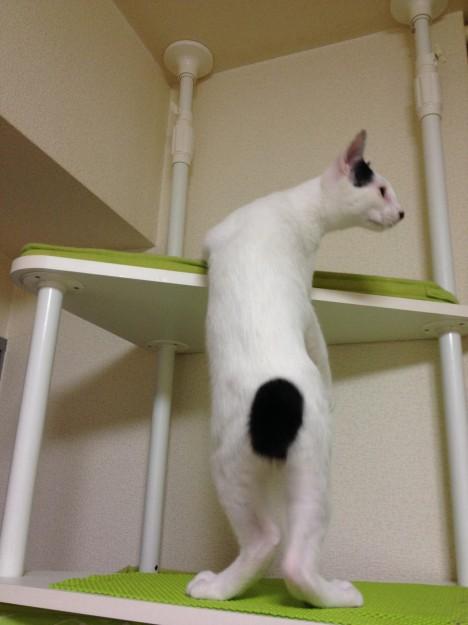 でも冷蔵庫の上には、反対側にあるキャットタワーから飛び乗らないといけないのです。