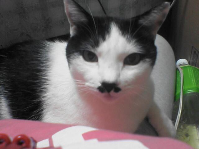 PCをいじりだすとkinntaが来てあぐらをかいてる膝の上に乗ってくる。kinntaのお気に入りの場所らしい・・。