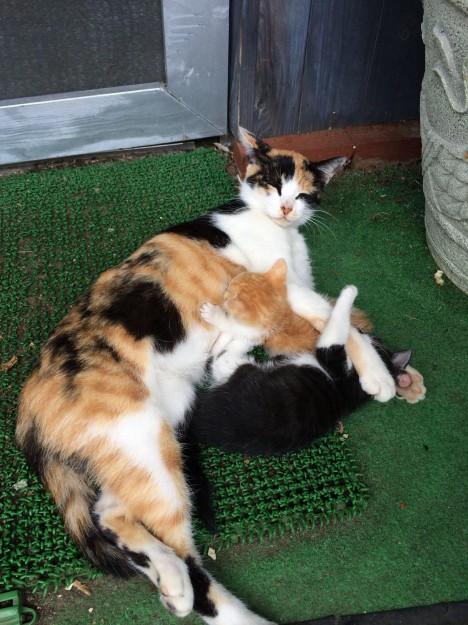 チビニャンを呼べば走って来るし、ママニャンコも人懐っこい。