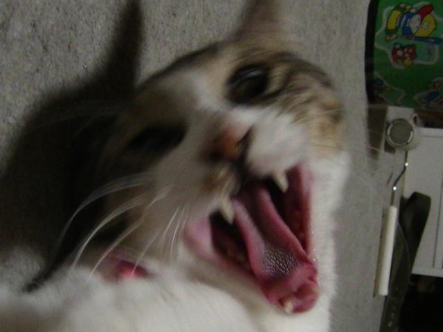 大きなあくび(ぶれぶれ)。こ、怖い・・・