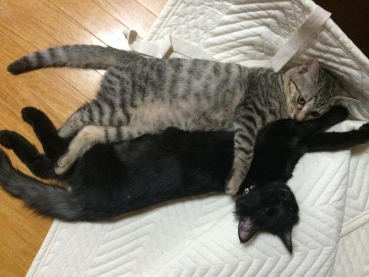 虎丸殿はフードにしか興味がないのですが、獅子丸殿はおもちゃの羽根やダンボール、籠など、噛んで遊んでるつもりで飲み込んでしまうみたいです。もしかしたら私が思ってる以上に飲んでるかも…。噛むおもちゃをあげても噛まないので、好みのものを根気良く探すしかないですね。