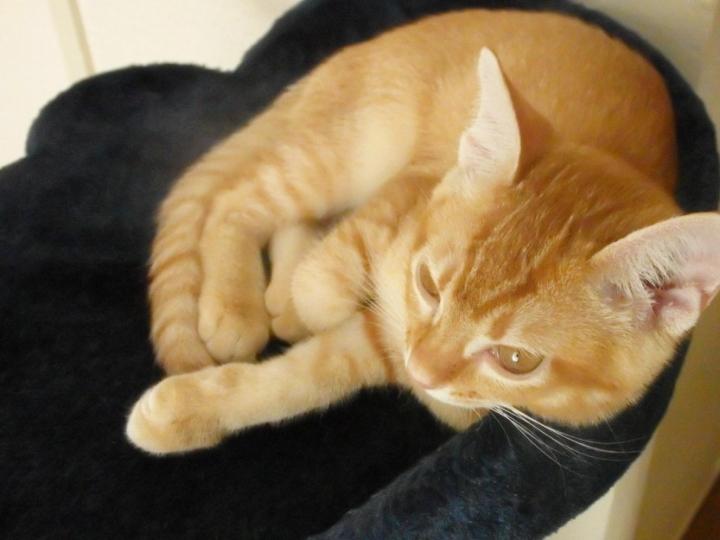 いつもはキャットタワーの上で寝るのが定番なのですよね。