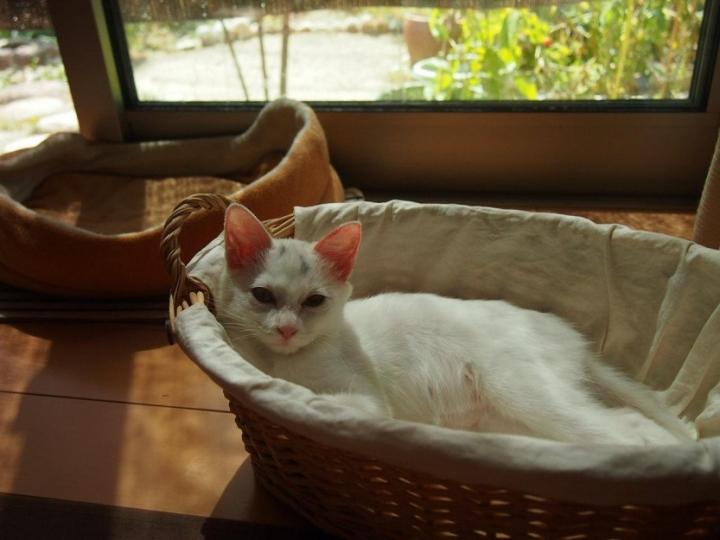 家で保護している白猫ユキちゃん(メス)です。ちょっとわがままでお転婆だけど、優しい里親さん募集中です。