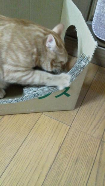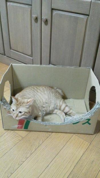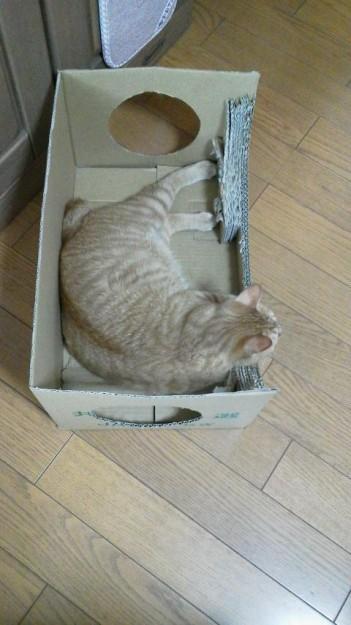 ダンボールの縁が好きみたいで、結局手作りしました。