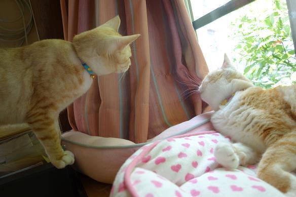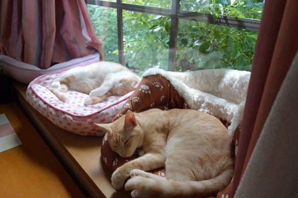 出窓のクッション、夏場は暑くて誰も近寄らなかったんですが