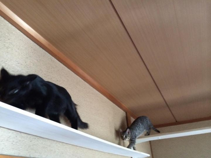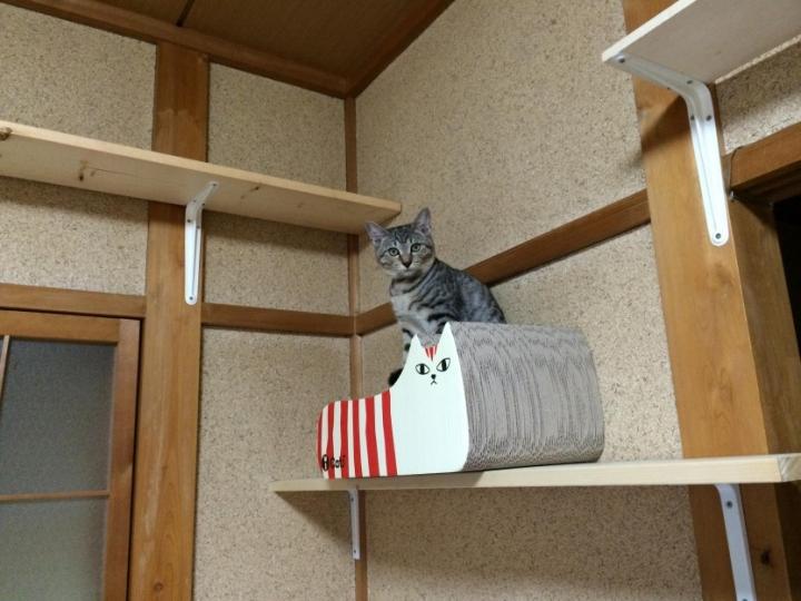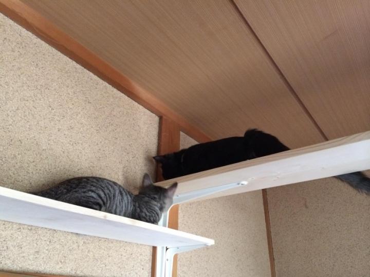 平屋ですしそう広くもないので猫たちが少しでも広く感じられるようにとキャットウォークをちょっとずつ作っています。