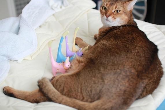 木彫りの子猫の授乳中 キターーーーヽ(^o^)丿