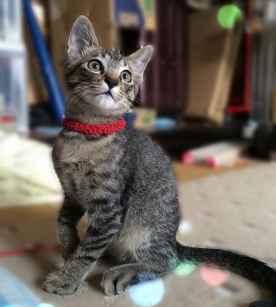 赤い首輪は、トン吉とお揃いです。