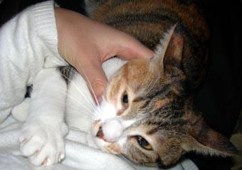と考え、『レンジでチンしてぽっかぽか』を温めて、フリース毛布にくるんであげたら、今度はその上にのったまま、じっと動かなくなりました。