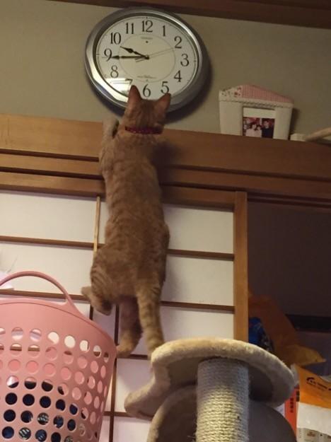ななは朝から壁を登ってます。