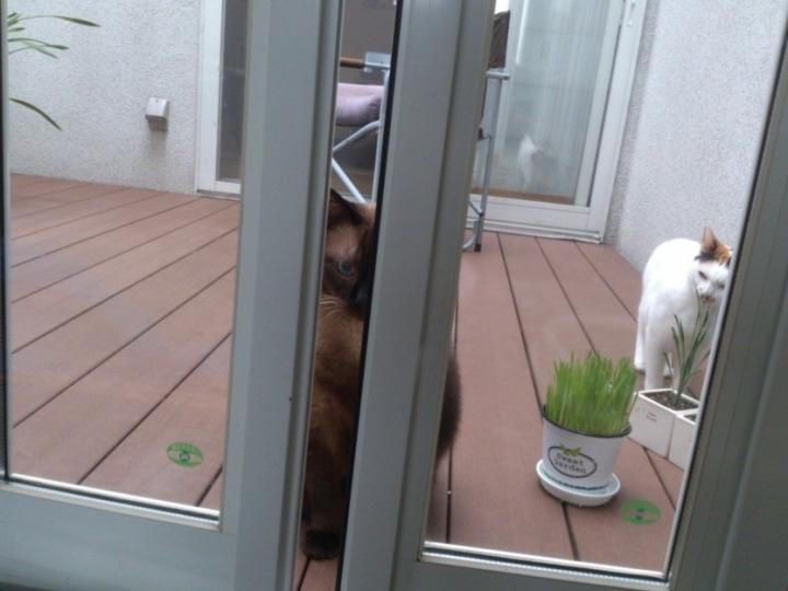 猫草があるのに、違う植物食べてる「まる」(-_-メ)