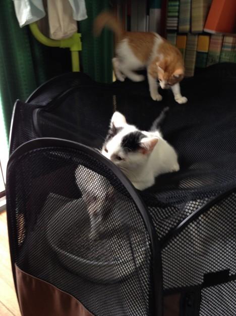 ところが昨日すんごい気合いを入れて部屋の床もケージもソフトサークルも除菌水で配置換えやら日干しやらとお掃除したらですね…