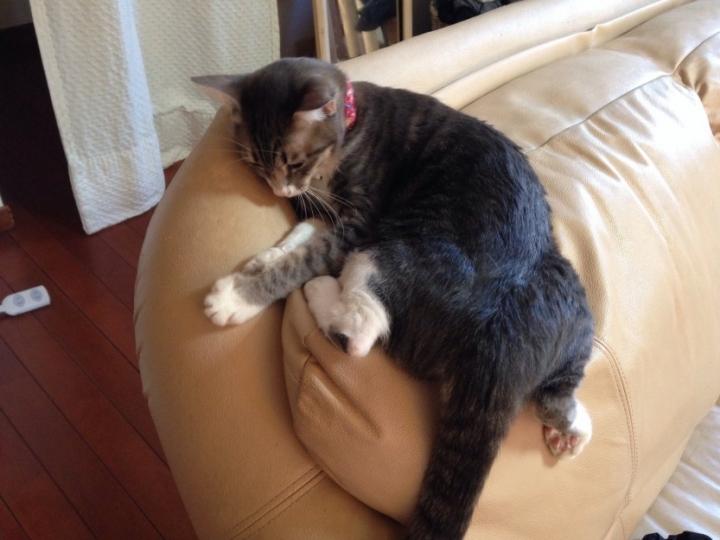ナミちゃんはお得意の変なかっこで昼寝中