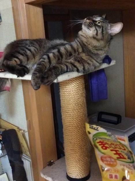 そして爪研ぎタワーに登りだしました。
