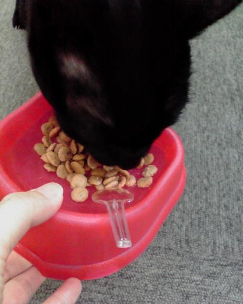 こんな感じで、ふやかしたドライフードをスプーンで食べやすい形に整えつつ、