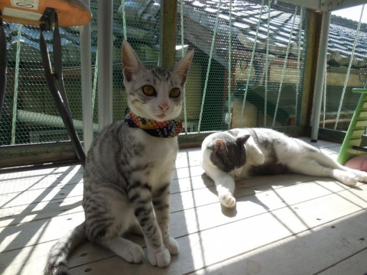 今日はいい天気、ニャンズは朝はひなたぼっこでした