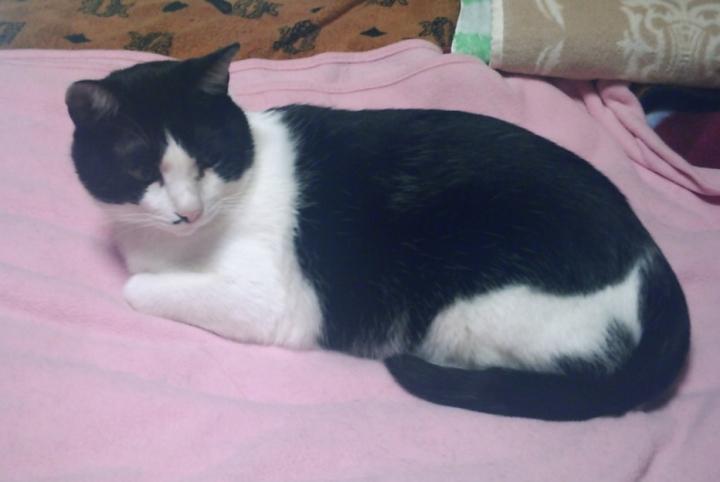 お母ちゃんのお部屋で少しふてくされているハチ君。