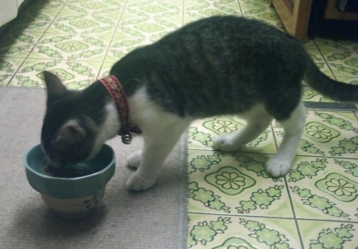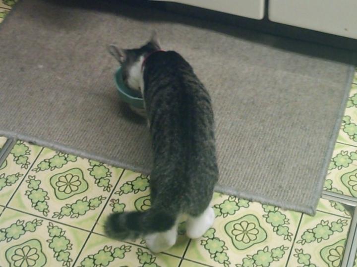 缶詰の残りを少しお皿にいれてやったのですが、どうやらハチ君の好きな味ではなかったみたい。ちょっとだけ食べて、残して行ってしまいました。