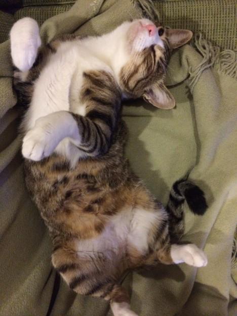 くわえて階段を上ってベッドまで連れて行き、起きたら階段に放置。