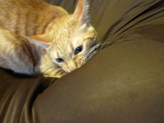ななさん、私の愛用の無印の一人用ソファを噛んでる??