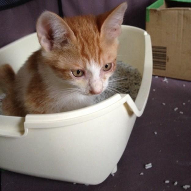 真剣なお顔でふんばるw豆一くんw(ちょっと前の写真なのでまだ涙目)