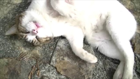 白トラの仔猫が1匹捨てられているのを、近くのソバ屋の娘さんが見つけ保護しました。