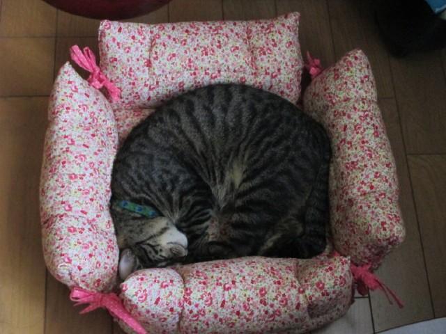 夕べ寝ているとベッドの上を猫が歩いている感じがしました。