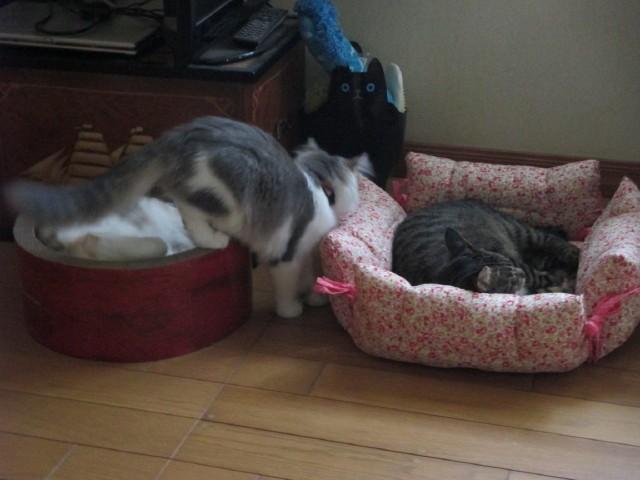 そこへやって来たこのはがどちらかへ潜り込もうとしましたが失敗。