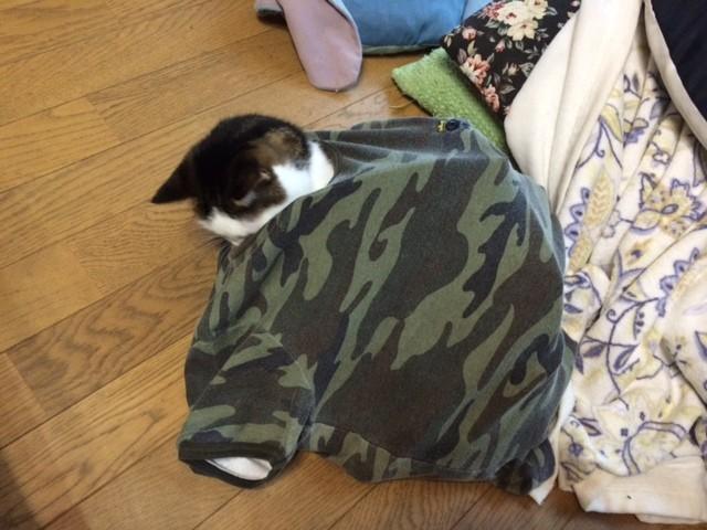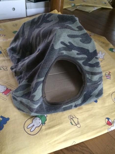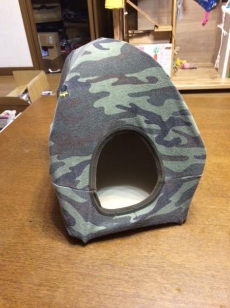なぜか迷彩柄のTシャツで作って、テントっぽくできて満足です(笑)