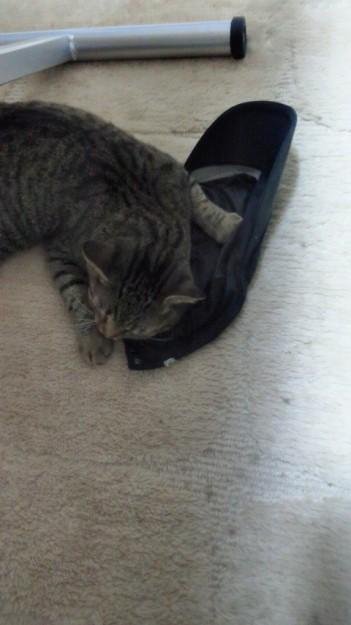 でも、昨晩は、旦那がリビングにほったらかしてた作業時使用の汗の染み込んだキャップを、おまるが発見!
