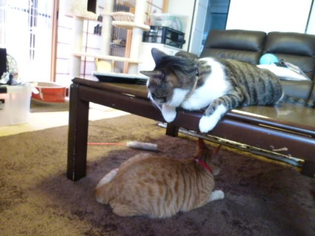 にゃんずは日中リビングで過ごすのでジュンはケージから恨めしそうな表情ですが、朝だけはリビングで解放するので楽しそうです。