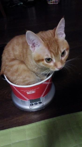 家に来た時から体重測定で使っているカップもごらんのとおりかなり限界でございます。