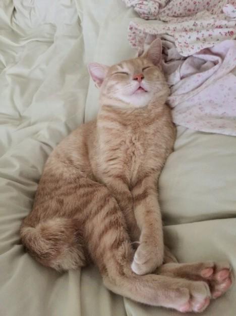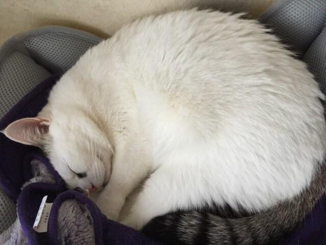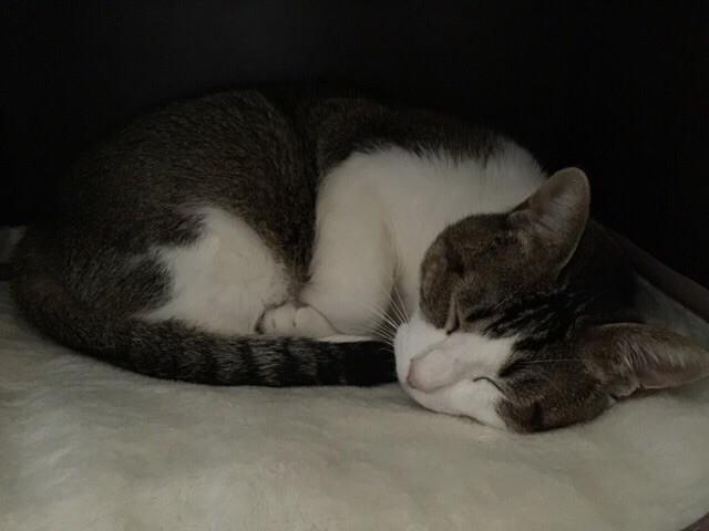 カメラを向けたら起きたので、これは数日前の風邪で寝てる私の上で爆睡した時の写真です(=^ェ^=)