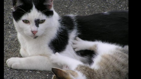 そのテトラポットには「パン君」という、白黒のパンダ猫(オス)と、その仲間、約10匹ほどの野良ちゃんが住んでいたのです。