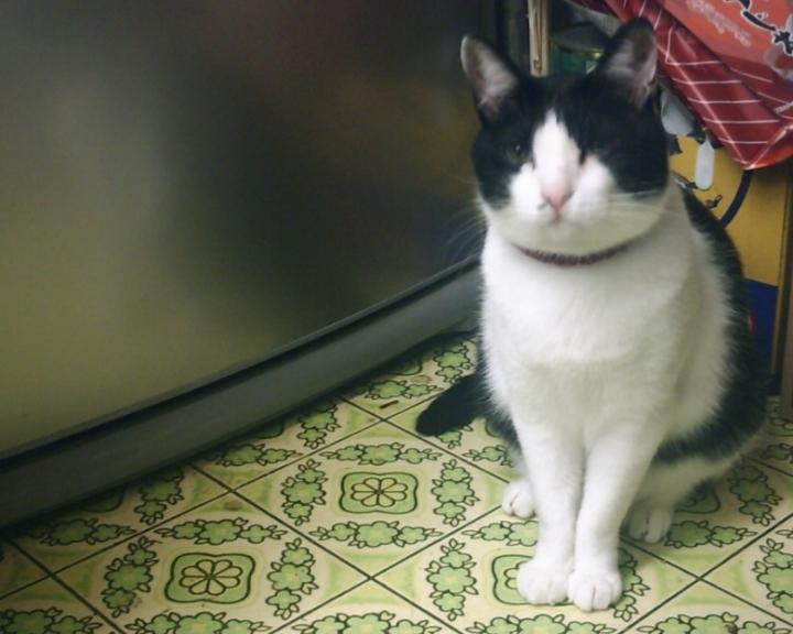 七七保が起きてこないうちに、甘えておやつをもらいたいハチ君です。