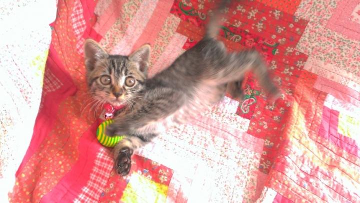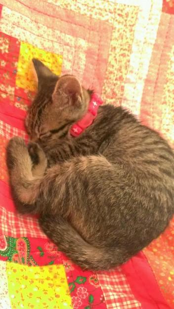 14日→朝、お薬飲まして点眼、点鼻、おハゲの軟膏、だいぶ?というかかなり元気になり朝からあっちこっち走り、エサも食べ、子供が運動会の代休で幼稚園休みなのでおもちゃで遊ばせるとチョコちゃん、ノリノリで遊んでくれました~まだまだ赤ちゃんだから適度に遊んでそしてうとうと眠りだしました☆昼間はいいお天気だから気持ちよさそうにぐっすり寝てます~微笑ましい(*´ω`*)