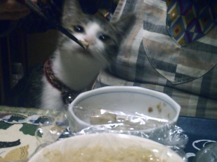 「くんくん。あたちも、ひとくちっ、ひとくちぃ~。」