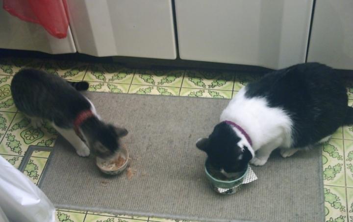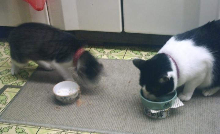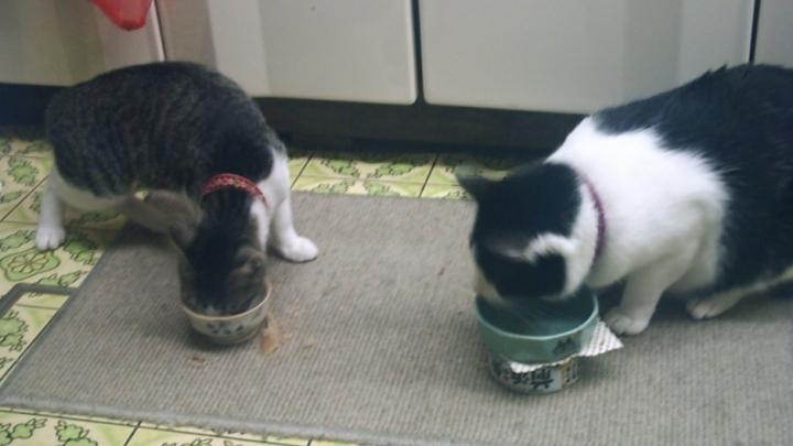 「はむっ、はむはむっ。おいちいにゃぁ。」